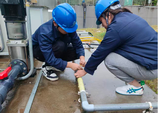 武陵山區寒意漸濃,在石柱項目黃水鎮第二污水處理廠,運營人員正為露天的加藥管路“穿上”橡塑保溫套。他們用扎帶精準固定,確保保溫套如第二層皮膚般緊密貼合。全副武裝后,管路仿佛擁有了對抗嚴寒的“鎧甲”,變得更加堅韌,徹底告別了被凍裂的風險。這條堅實的“動脈”將在整個寒冬中持續護航,確保每一滴生產藥劑都精準抵達投加點。