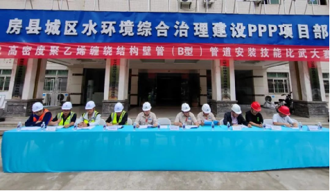 房縣項目公司與中國水電四局聯(lián)合舉辦了共抓長江大保護(hù)勞動競賽,共開展了包括有限空間應(yīng)急救援、高密度聚乙烯纏繞結(jié)構(gòu)壁管道安裝技能比武兩個賽項,共有12支隊伍、近200人參賽。